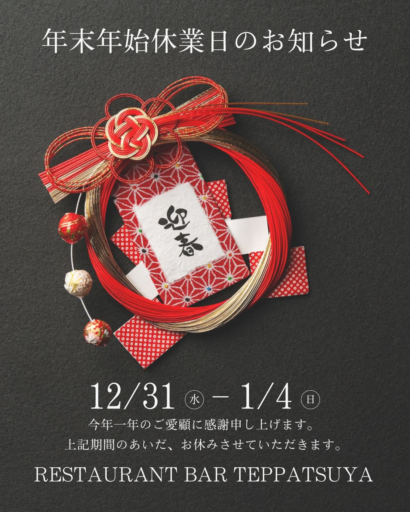 《年末年始休業のお知らせ》《年末年始休業のお知らせ》 今年も残すところあとわずか 一年のご愛顧に心より感謝申し上げます。 どうぞ良い年をお迎えください。