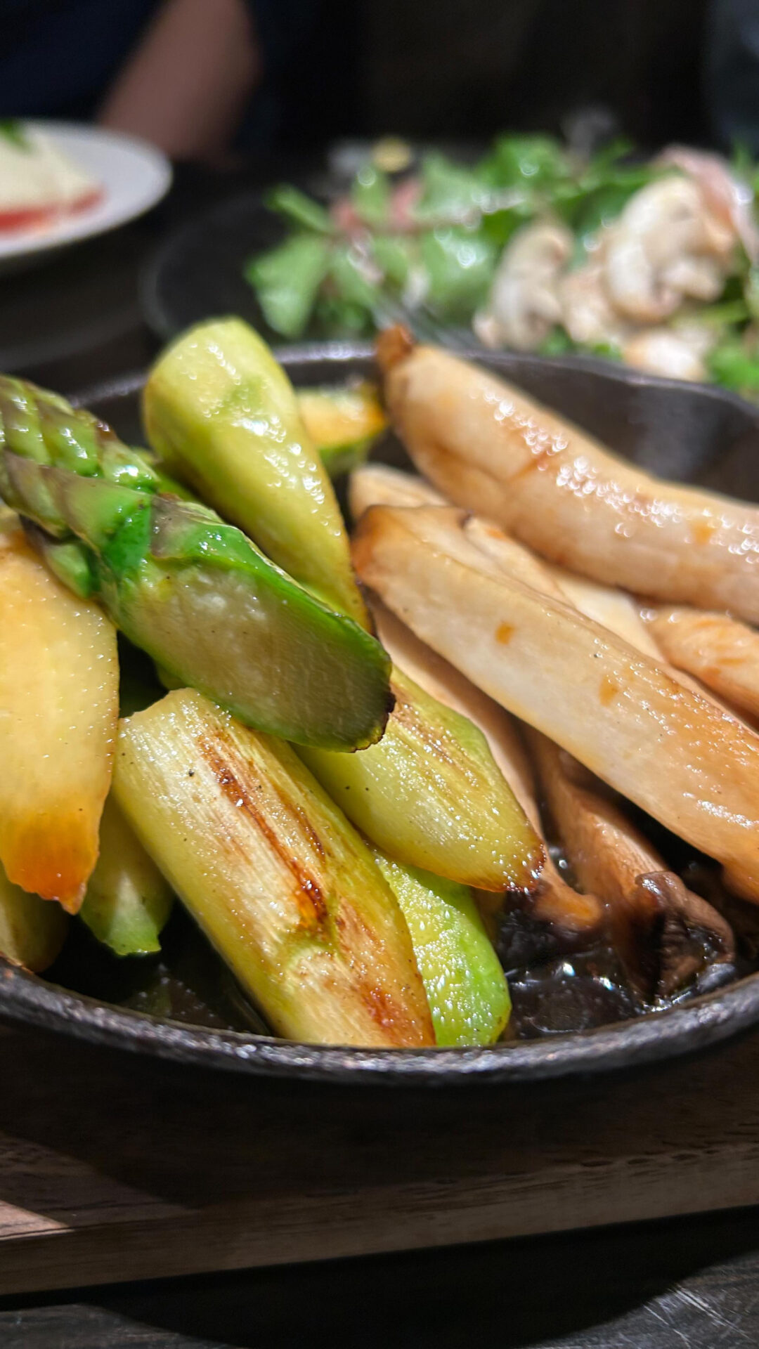 《アスパラガスとエリンギ茸の鉄板焼き》